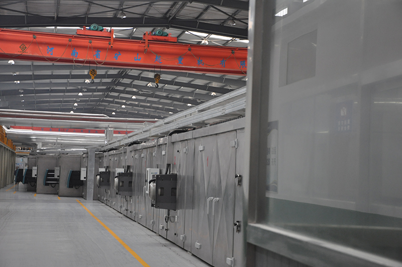石頭紙的雙向拉伸生產線,涉及石頭紙的加工裝置。包括自前而后依次排列的三層擠出機、壓花成型裝置、前測厚裝置、縱向拉伸裝置、橫向拉伸裝置、后測厚裝置、冷卻修邊引取裝置、第一張力卷收裝置及第二張力卷收裝置,壓花成型裝置與三層擠出機承接,前測厚裝置與壓花成型裝置承接,縱向拉伸裝置與前測厚裝置承接,橫向拉伸裝置與縱向拉伸裝置承接,后測厚裝置與橫向拉伸裝置承接,冷卻修邊引取裝置與后測厚裝置承接,第一張力卷收裝置與冷卻修邊引取裝置承接,第二張力卷收裝置與第一張力卷收裝置承接。使石頭紙在縱向拉伸后接著進行橫向拉伸,致使石頭紙的厚度變薄,利于減輕紙張的重量,提高紙張質量,降低制造成本。BOPP-BOPE-BOPLA-BOPBT雙向拉伸設備